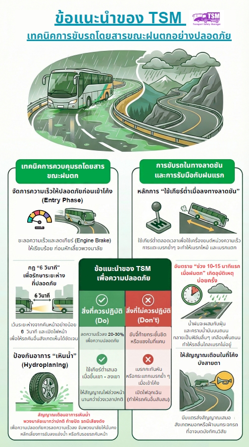 ข้อแนะนำของ TSM เทคนิคการขับรถโดยสารขณะฝนตกอย่างปลอดภัย…
